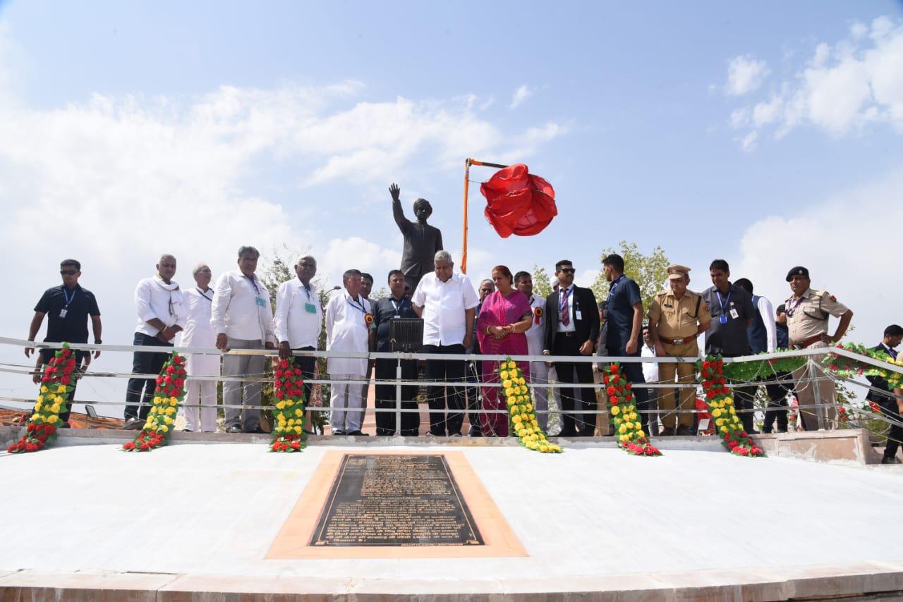 उपराष्ट्रपति ने नागौर के मेड़ता सिटी में स्वर्गीय नाथूराम मिर्धा की प्रतिमा का अनावरण किया